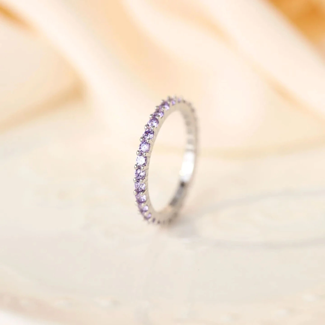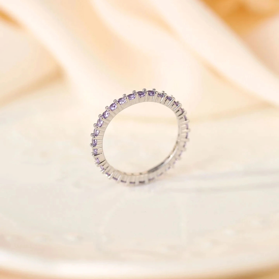 Su diseño cautivador, realzado por una piedra de amatista radiante, ofrece una sofisticación que sabrá realzar su encanto con un brillo único y un diseño refinado.
