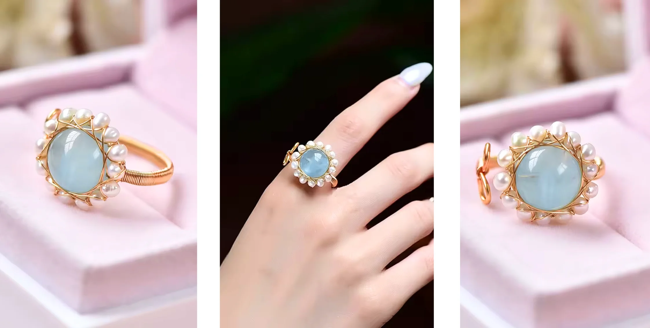 • Material: Anillo delicadamente elaborado que resalta el brillo único de la aguamarina.