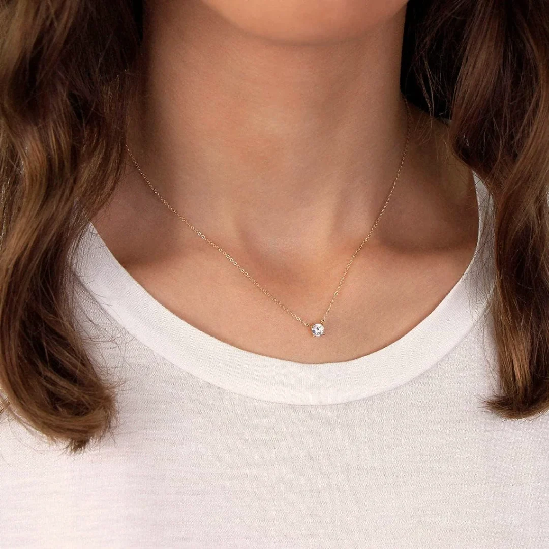 Con su diseño depurado y sofisticado, esta joya realza su escote mientras aporta un toque de elegancia a su estilo personal.